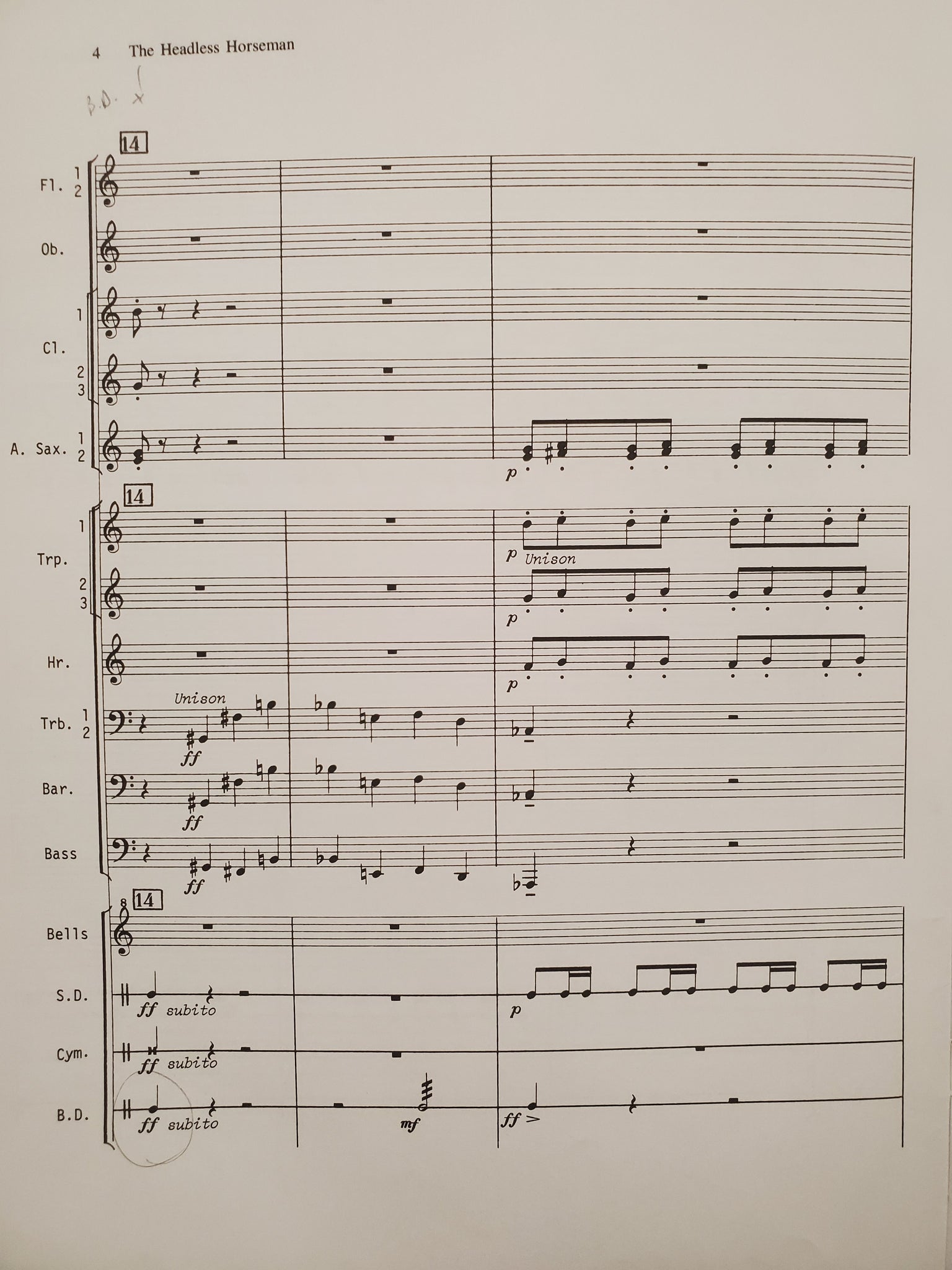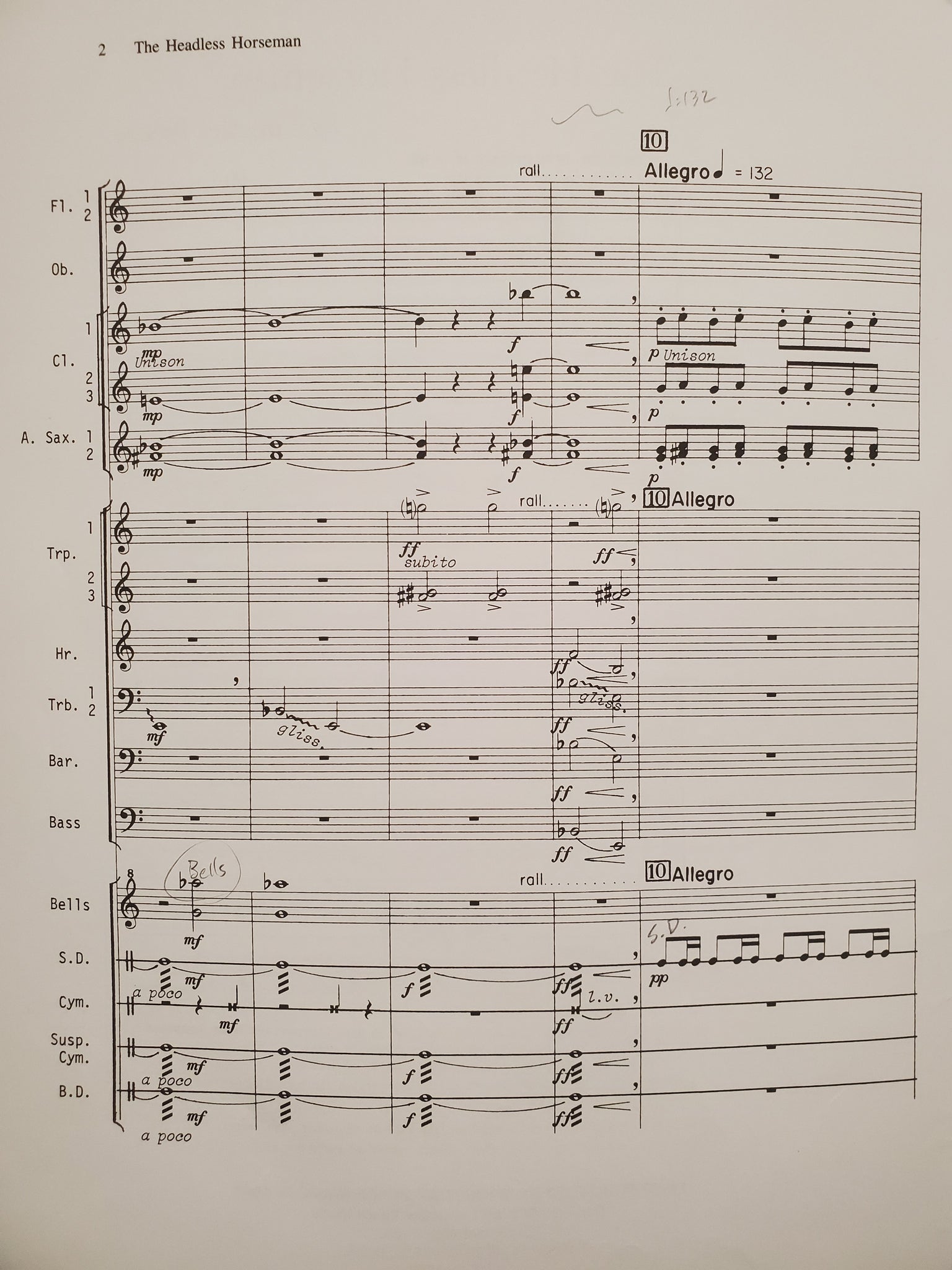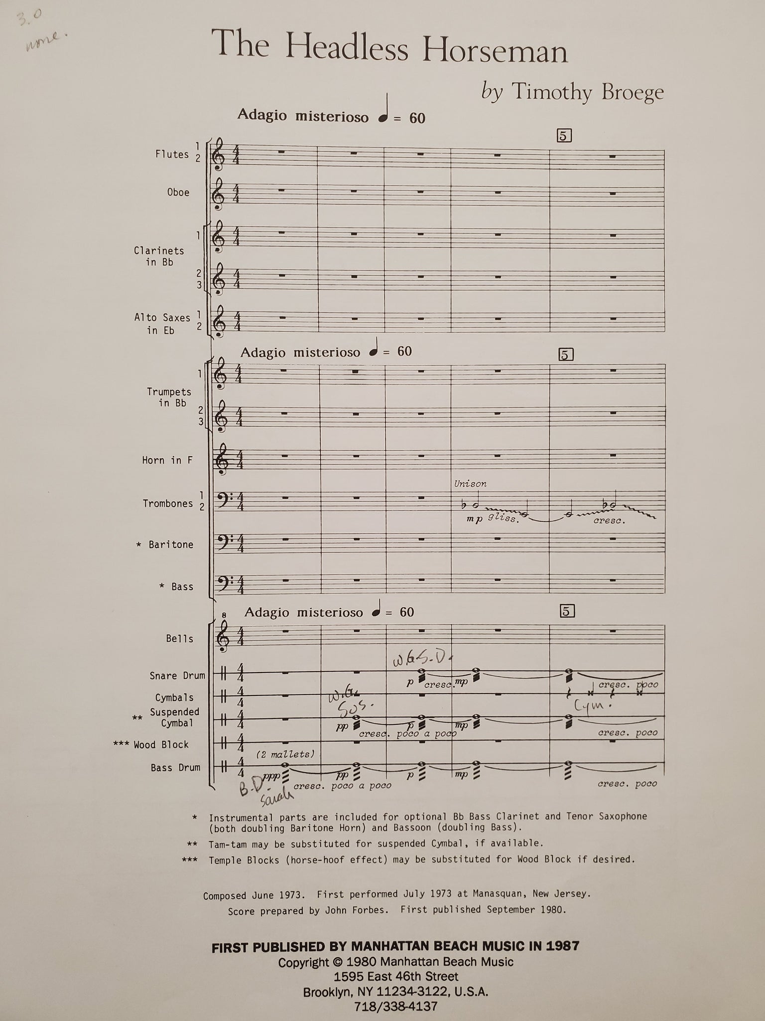 Instrumentation:score; 4-flute 1; 5-flute 2/oboe; 4-clarinet 1; 8-clarinet 2/3; 2-bass clarinet; 2-alto sax 1; 2-alto sax 2; 1-bari sax; 3-trumpet 1; 3-trumpet 2; 3-trumpet 3; 4-F horn; 2-trombone 1; 2-trombone 2; 4-Bb baritone T.C./tenor sax; 2-Bb horn B.C.; 5-bass/bassoon; 5-percussion