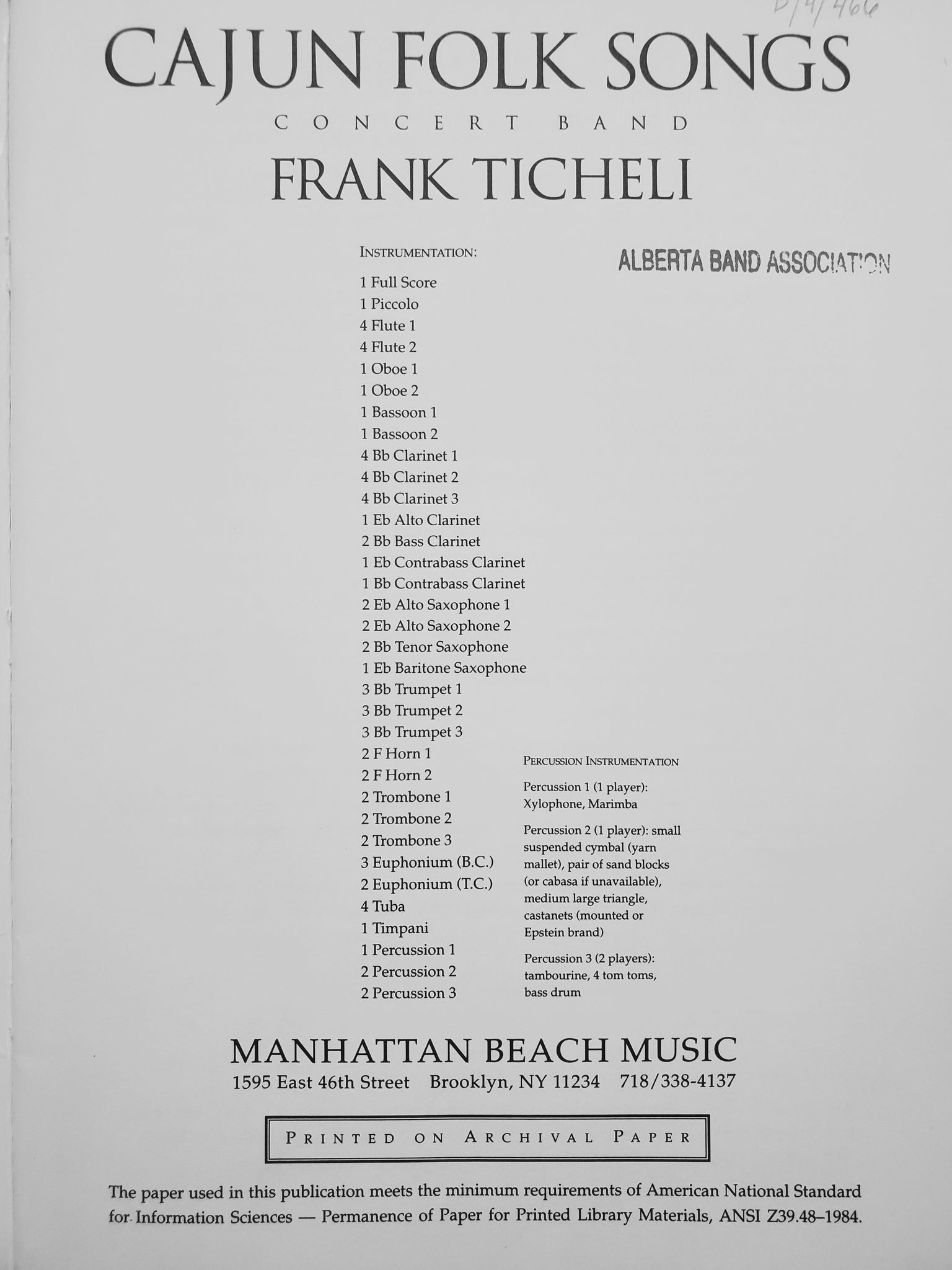 Instrumentation: score; piccolo; 4-flute 1; 4-flute 2; oboe 1; oboe 2; bassoon 1; bassoon 2; 4-clarinet 1; 4-clarinet 2; 4-clarinet 3; alto clarinet; 2-bass clarinet; Eb contrabass clarinet; Bb contrabass clarinet; 2-alto sax 1; 2-alto sax 2; 2-tenor sax; bari sax; 3-trumpet 1; 3-trumpet 2; 3-trumpet 3; 2-horn 1; 2-horn 2; 2-trombone 1; 2-trombone 2; 2-trombone 3; 2-euphonium BC; 2-euphonium TC; 4-tuba; 1-timpani; percussion 1; 2-percussion 2; 3-percussion 3