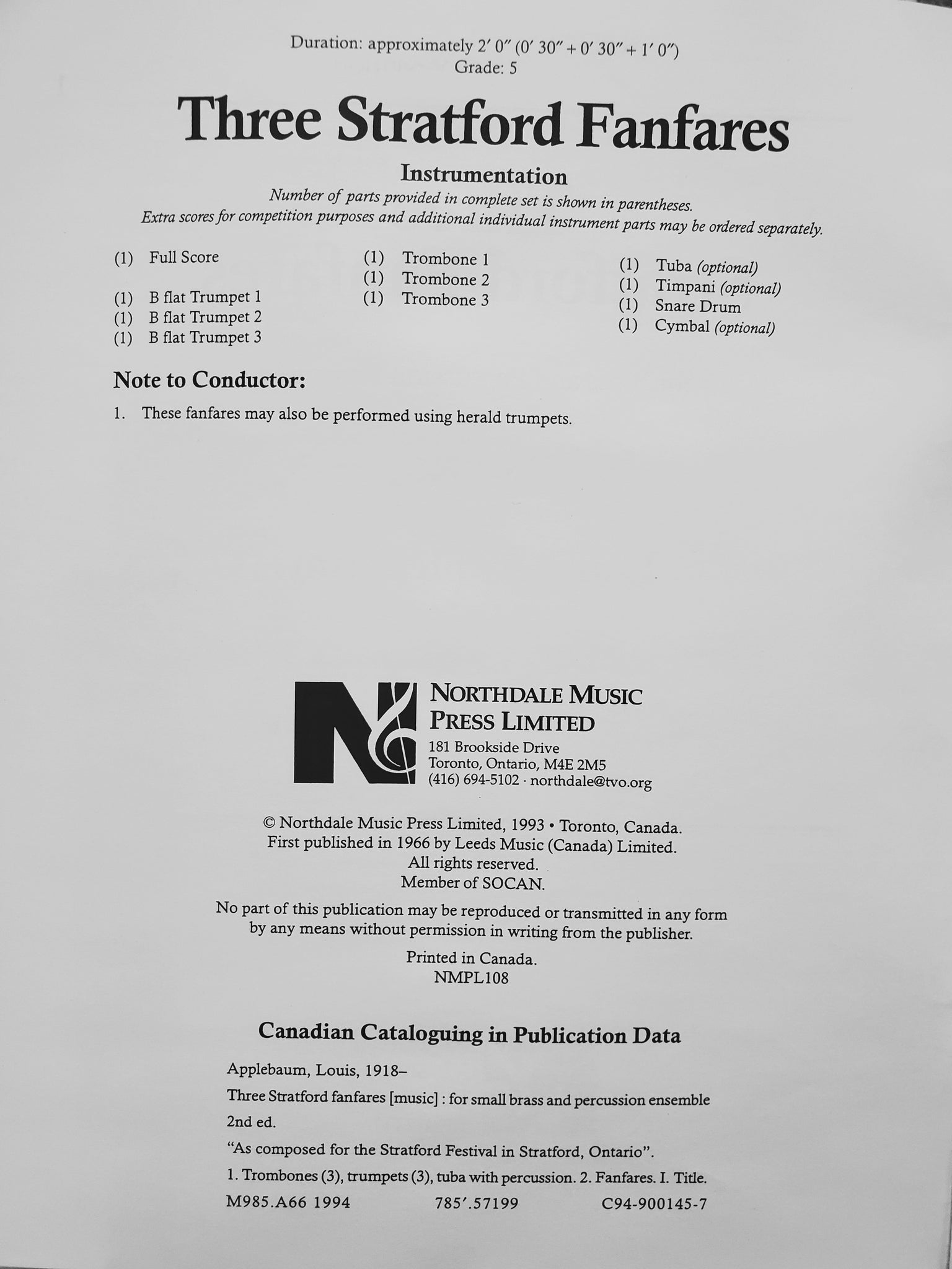 • Load image into Gallery viewer, Three Stratford Fanfares Applebaum, Louis