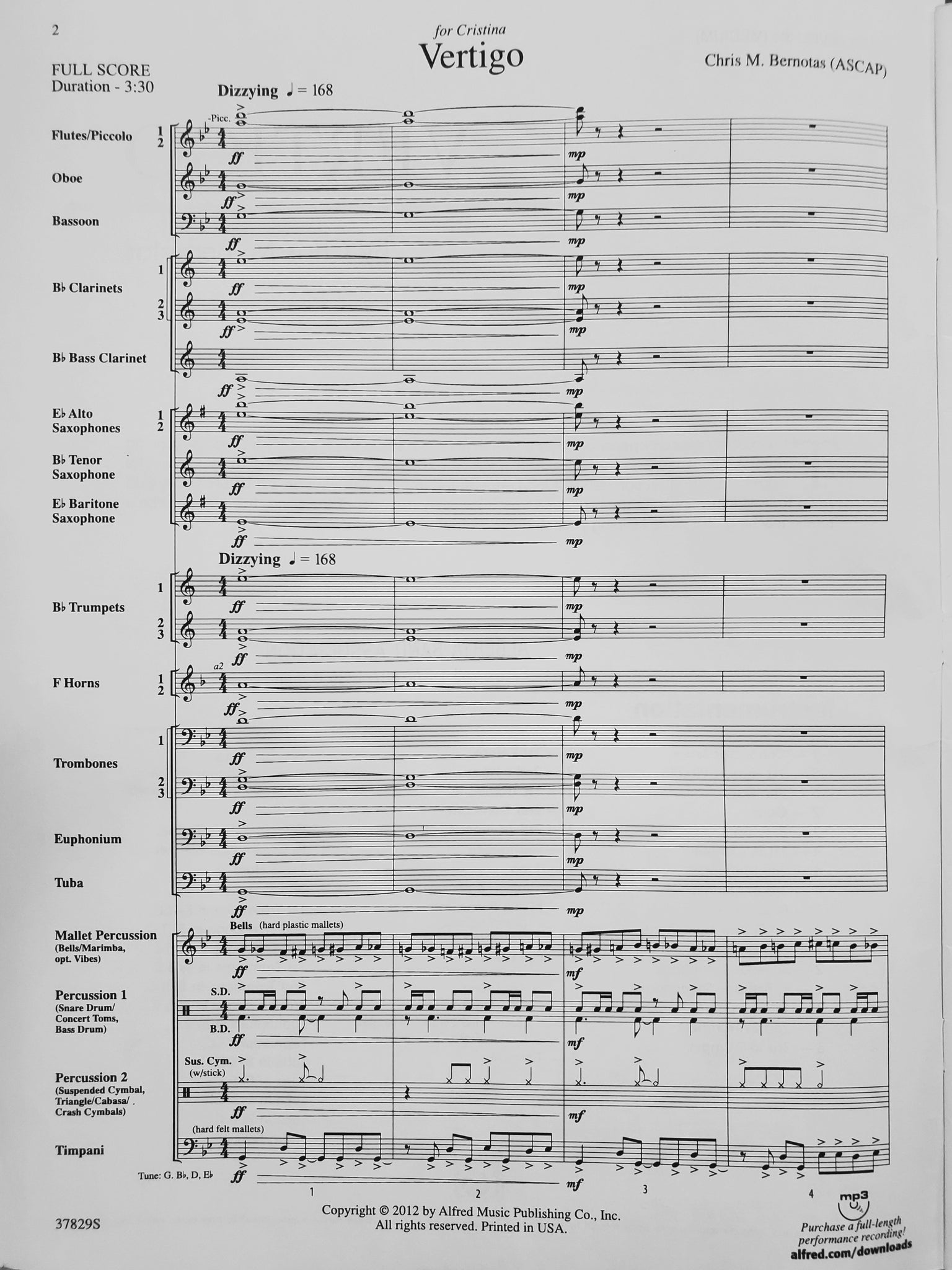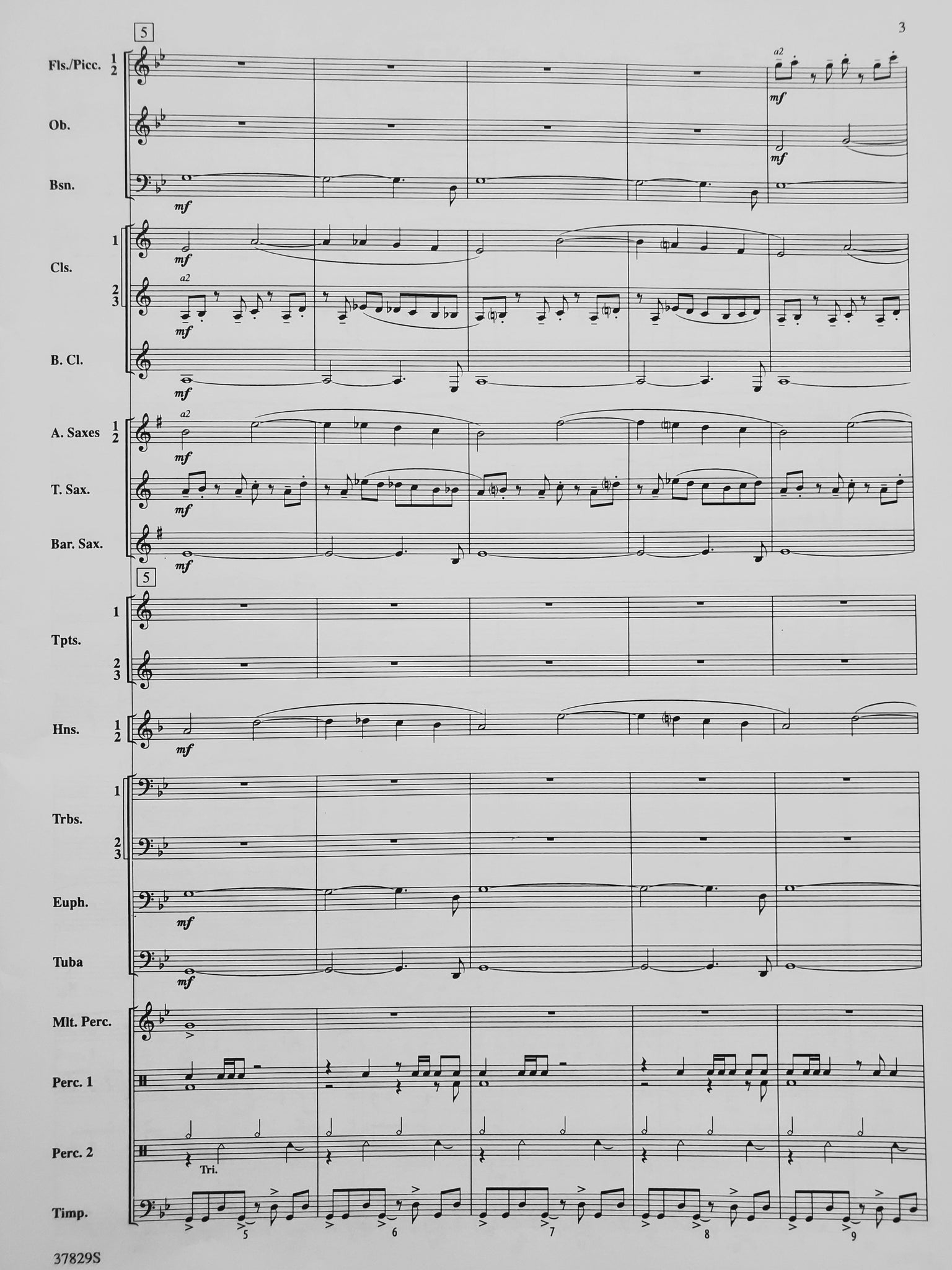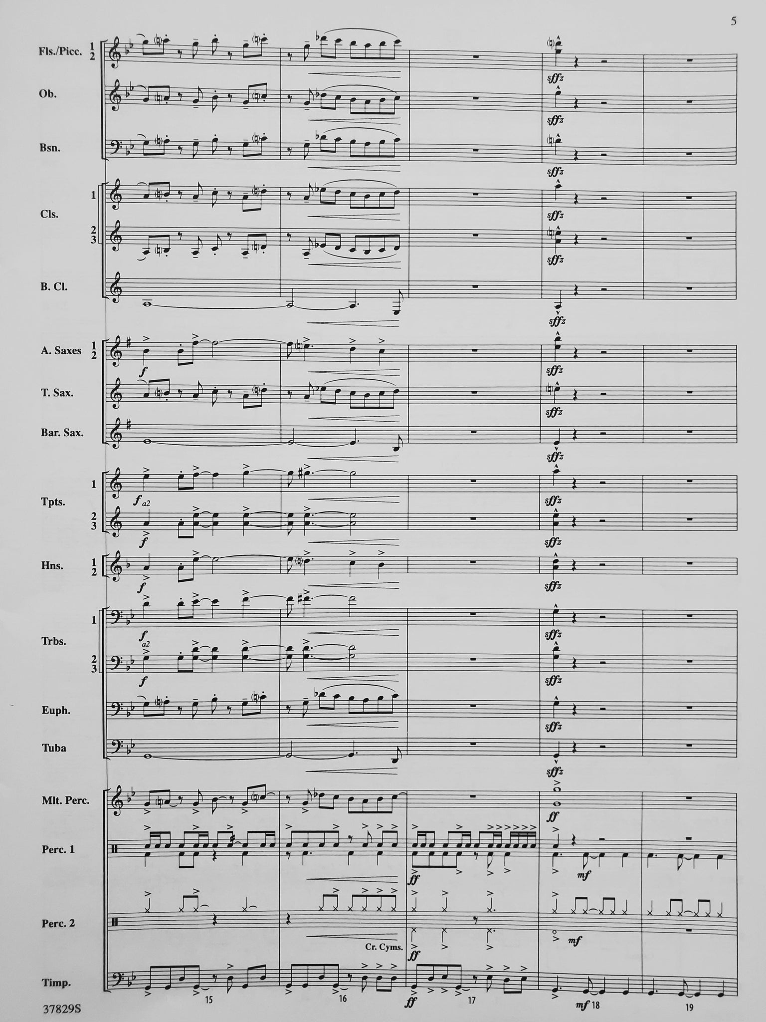 Instrumentation: score; 5-flute 1 and piccolo; 5-flute 2; 2-oboe; 2-bassoon; 4-clarinet 1; 4-clarinet 2; 4-clarinet 3; 2-bass clarinet; 2-alto sax 1; 2-alto sax 2; 2-tenor sax; 1-bari sax; 3-trumpet 1; 3-trumpet 2; 3-trumpet 3; 2-horn 1; 2-horn 2; 2-trombone 1; 2-trombone 2; 2-trombone 3; 2-euphonium; 4-tuba; 3-mallet percussion; 3-percussion 1; 4-percussion 2; 1-timpani