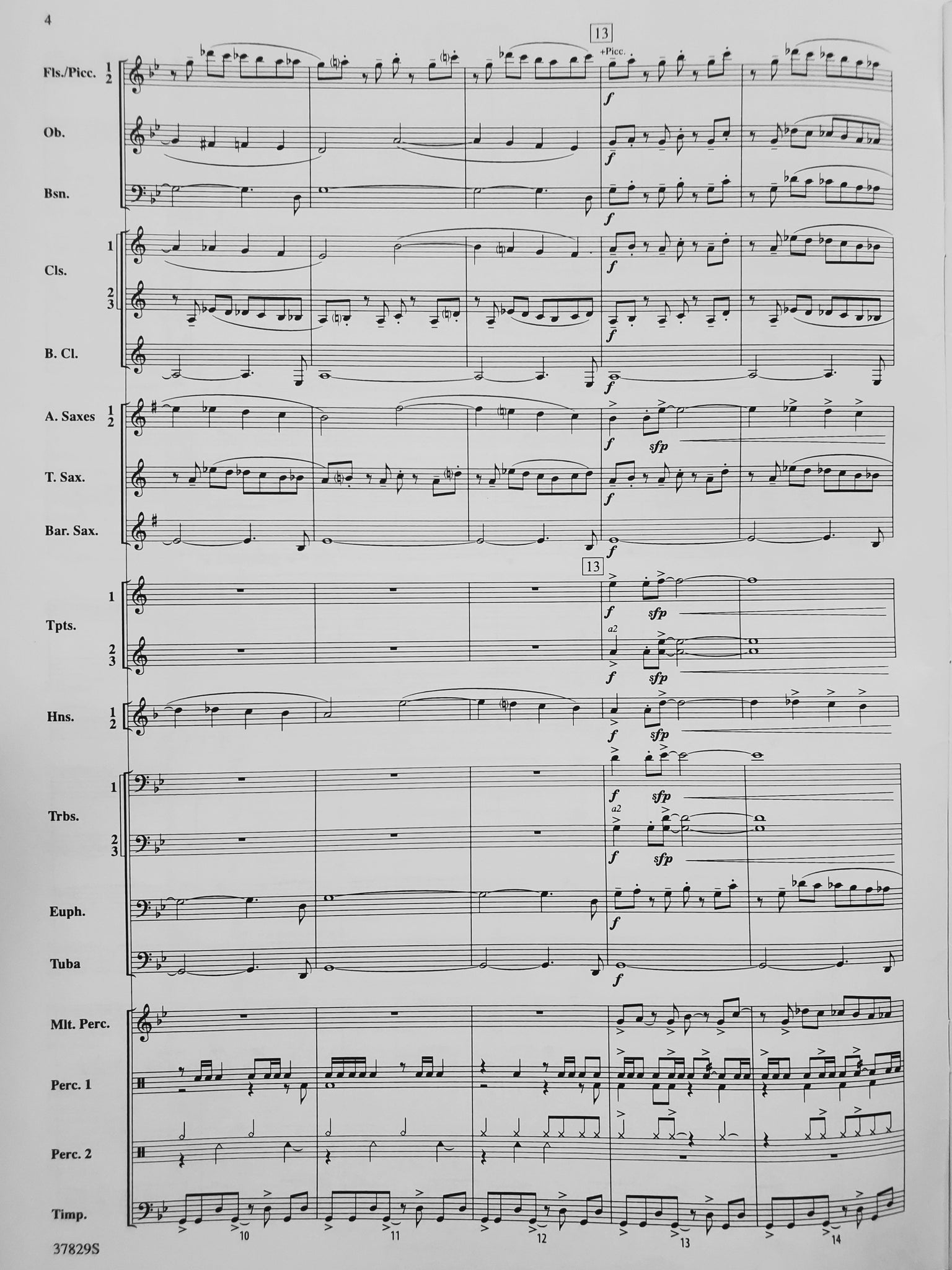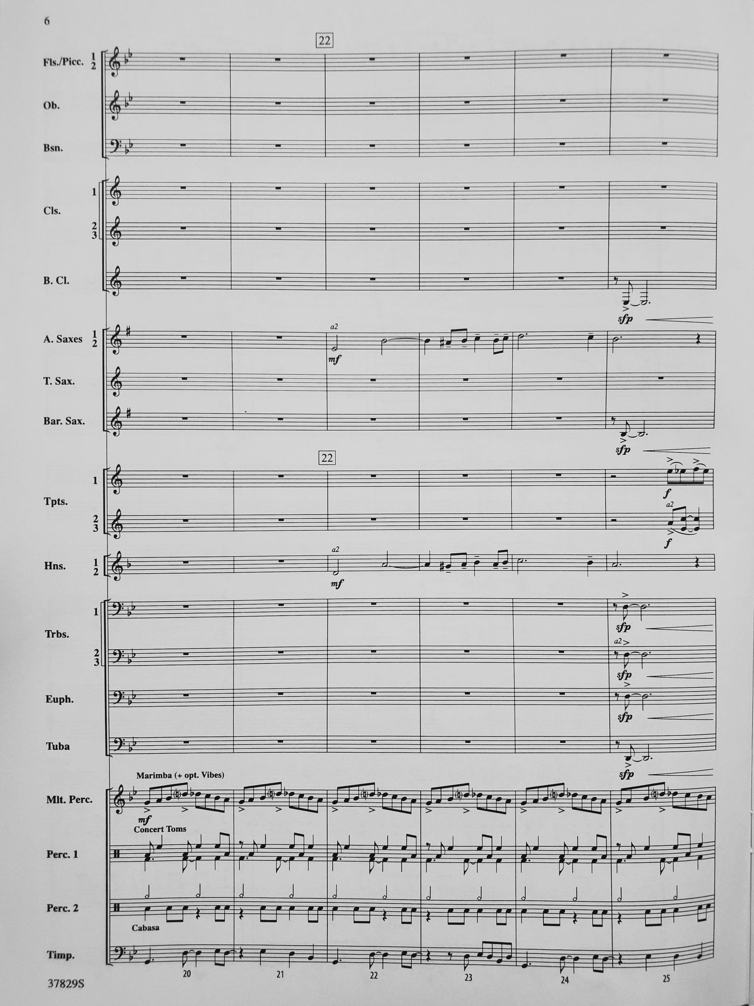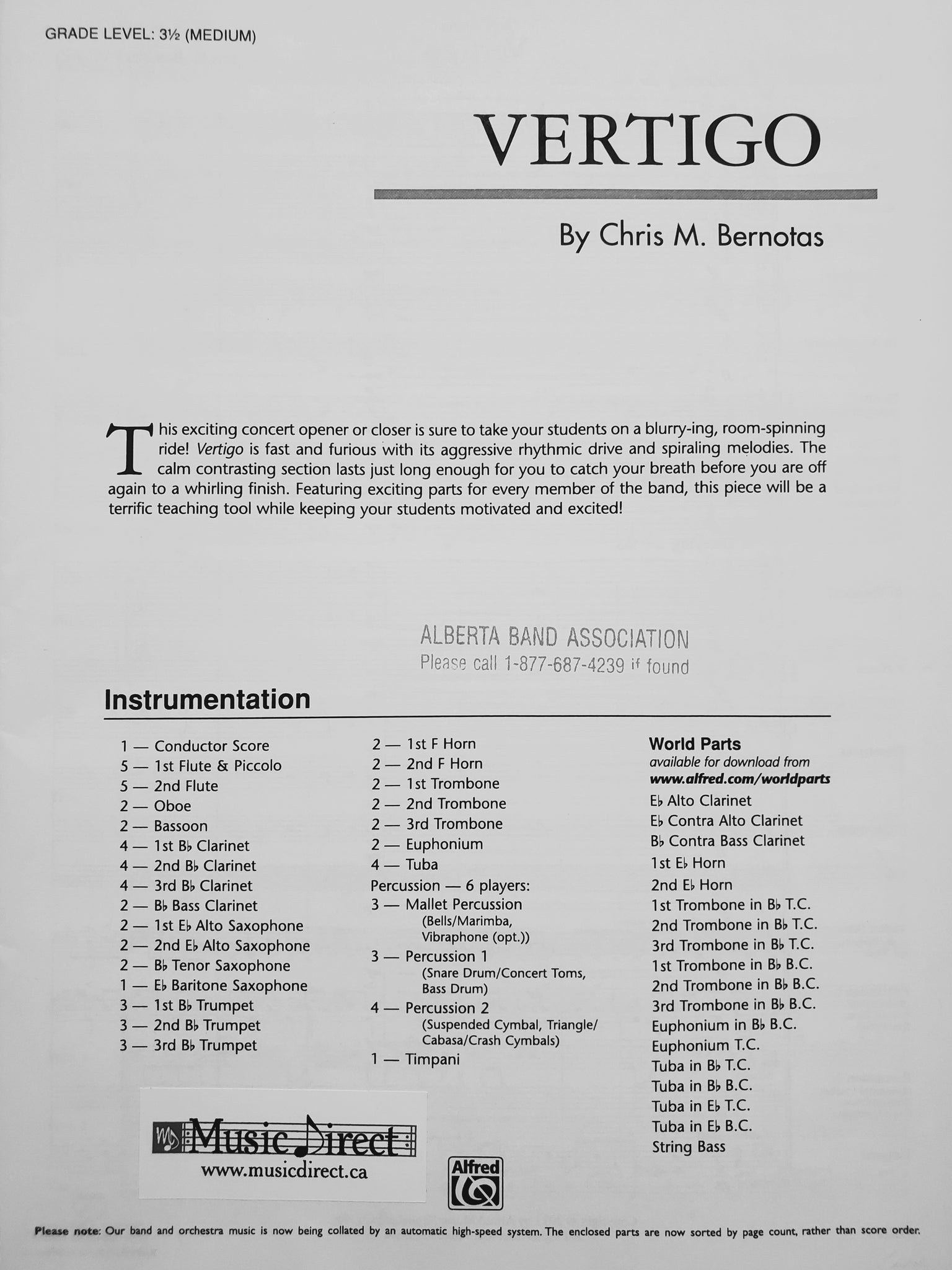 Instrumentation: score; 5-flute 1 and piccolo; 5-flute 2; 2-oboe; 2-bassoon; 4-clarinet 1; 4-clarinet 2; 4-clarinet 3; 2-bass clarinet; 2-alto sax 1; 2-alto sax 2; 2-tenor sax; 1-bari sax; 3-trumpet 1; 3-trumpet 2; 3-trumpet 3; 2-horn 1; 2-horn 2; 2-trombone 1; 2-trombone 2; 2-trombone 3; 2-euphonium; 4-tuba; 3-mallet percussion; 3-percussion 1; 4-percussion 2; 1-timpani