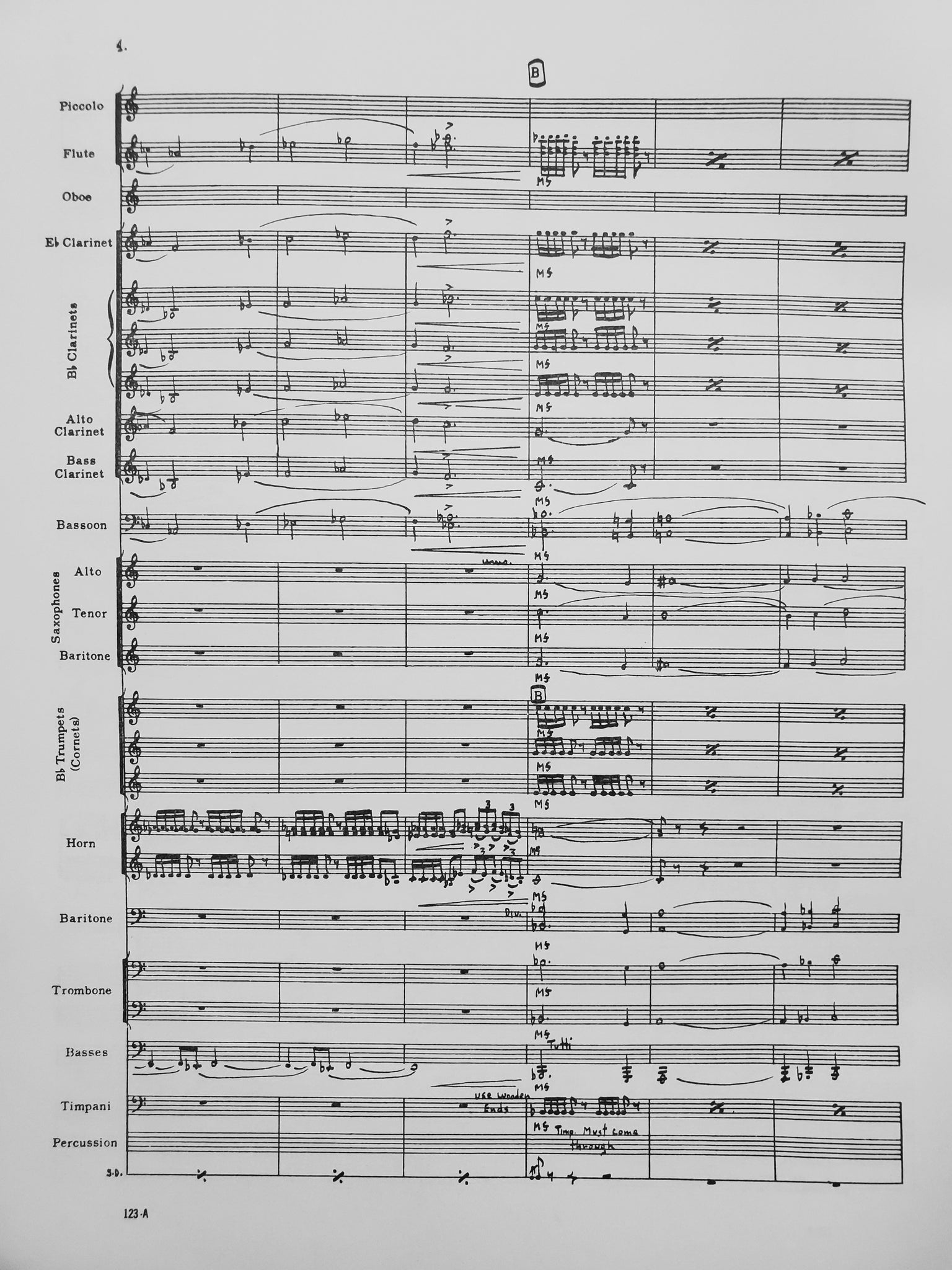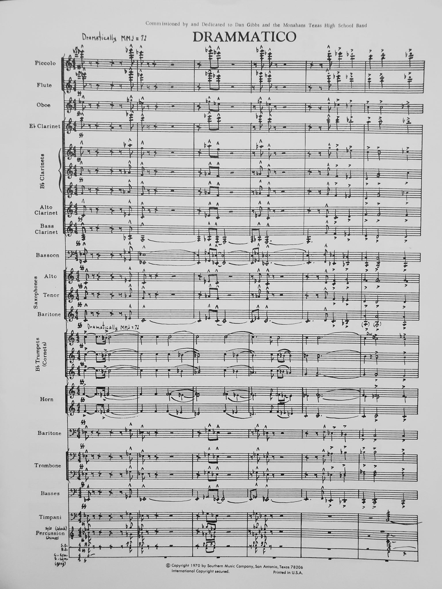 Instrumentation: full score; condensed score; 1-piccolo; 3-flute 1; 6-flute 2 and 3; 2-oboe; 1-Eb clarinet; 4-clarinet 1; 4-clarinet 2; 4-clarinet 3; 2-alto clarinet; 2-bass clarinet; 1-Eb contrabass clarinet; 1-Bb contrabass clarinet; 2-bassoon 1 and 2; 4-alto sax 1 and 2; 2-tenor sax; 1-bari sax; 3-cornet 1; 3-cornet 2; 3-cornet 3; 1-horn 1; 1-horn 2; 3-horn 3 and 4; 3-baritone TC; 3-baritone BC; 2-trombone 1; 2-trombone 2; 1-trombone 3; 6-tuba; 1-timpani; 3-drums; 3-xylophone