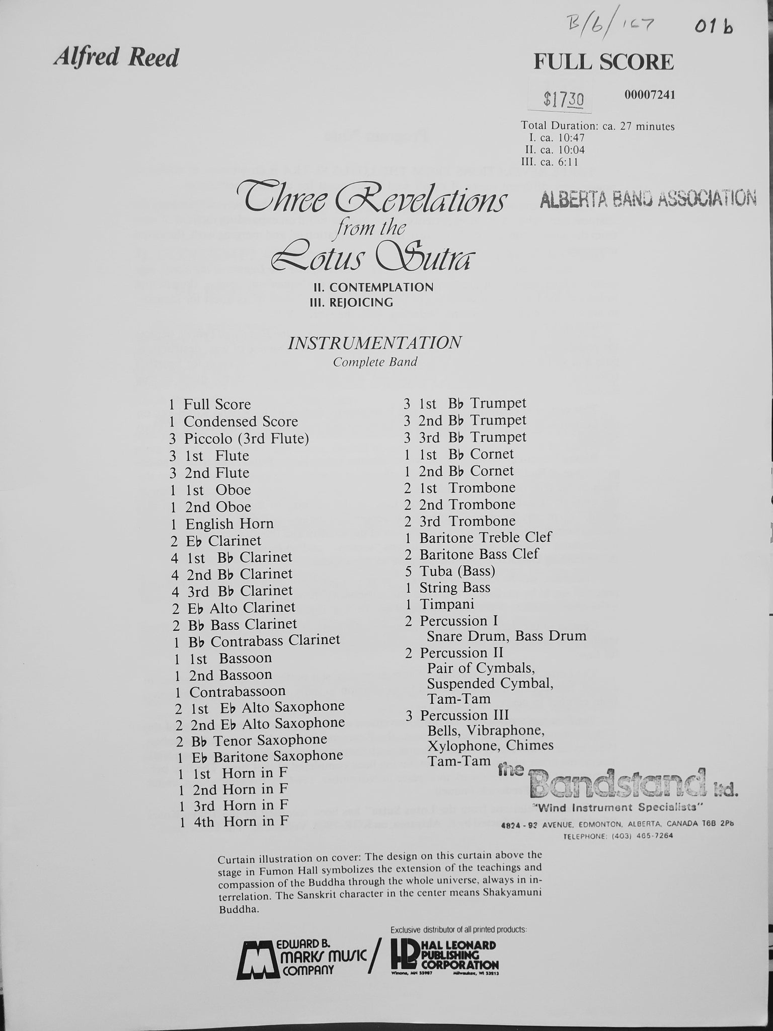 Instrumentation: score; 1- condensed score; 3-piccolo/3rd flute; 3-flute 1; 3-flute 2; 1-oboe 1; 1-oboe 2; 1-english horn; 2-Eb clarinet; 4-clarinet 1; 4-clarinet 2; 4-clarinet 3; 2-alto clarinet; 2-bass clarinet; 1-Bb contrGrade 6ss clarinet; 1-bassoon 1; 1-bassoon 2; 1-contra bassoon; 2-alto sax 1; 2-alto sax 2; 2-tenor sax; 1-bari sax; 1-horn 1; 1-horn 2; 1-horn 3; 1-horn 4; 3-trumpet 1; 3-trumpet 2; 3-trumpet 3; 1-cornet 1; 1-cornet 2; 2-trombone 1; 2-trombone 2; 2-trombone 3; 1-baritone TC; 2-baritone BC; 5-tuba; 1-string bass; 1-timpani; 2-percussion 1; 2-percussion 2; 3-percussion 3