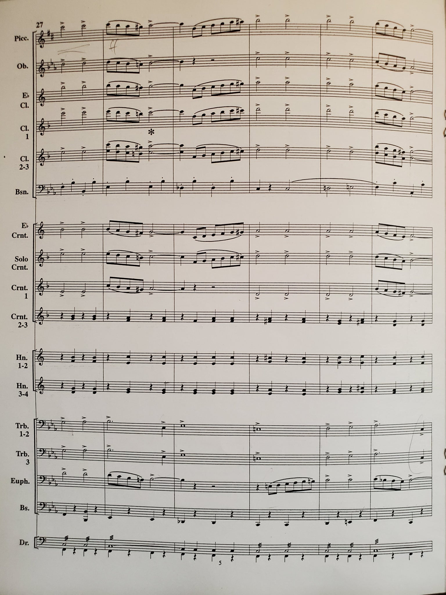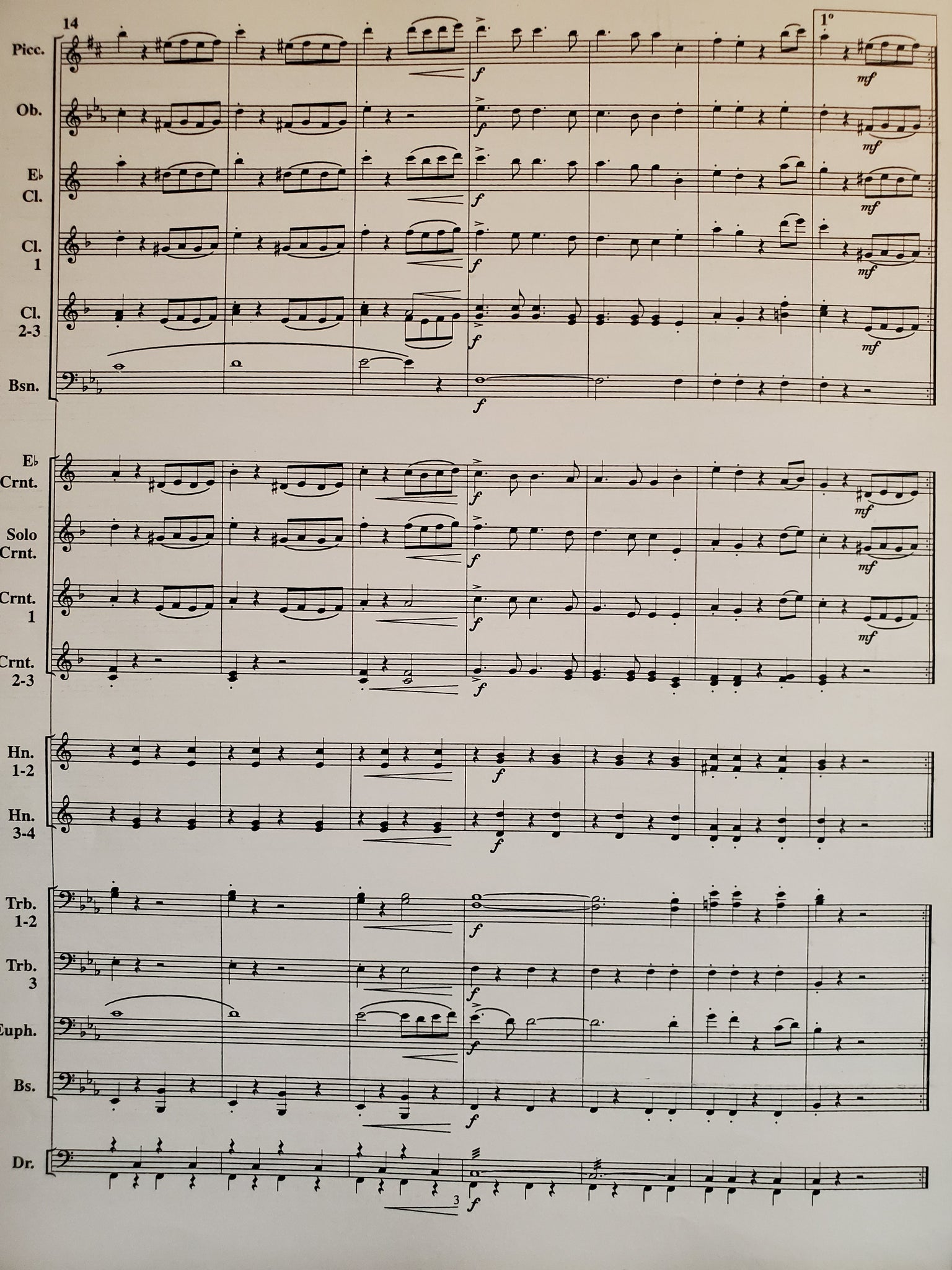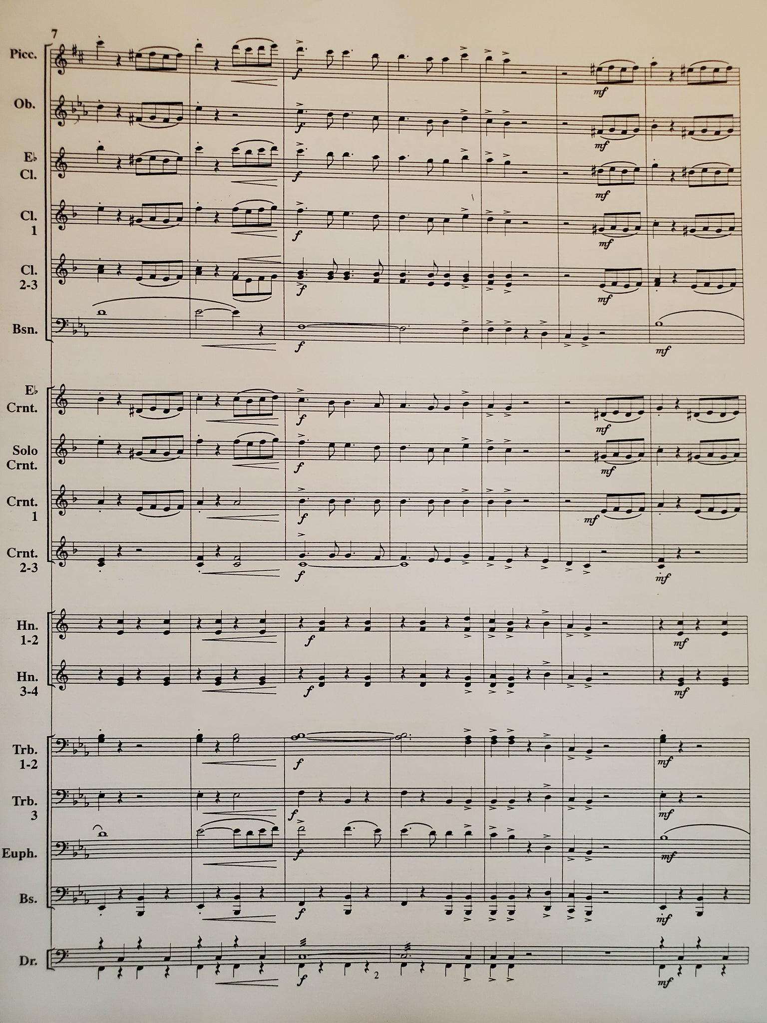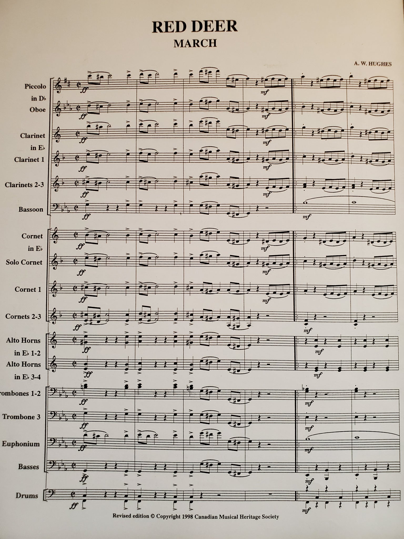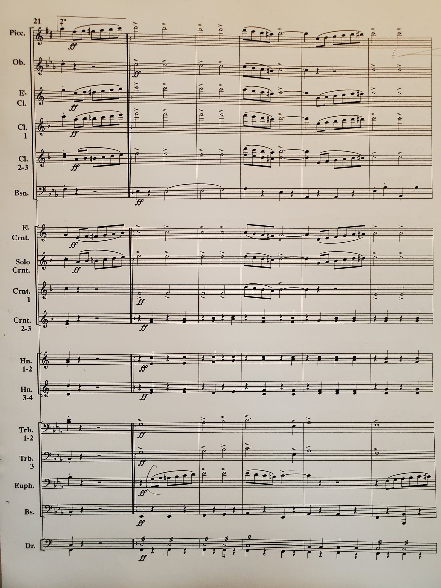 Instrumentation: score; 1-piccolo; 2-oboe; 1-Eb clarinet; 3-clarinet 1; 6-clarinet 2 and 3; 2-bassoon; 1-Eb cornet; 1-solo cornet; 2-cornet 1; 4-cornet 2 and 3; 1-Eb alto horn 1 and 2; 1-Eb alto horn 3 and 4; 1-F horn 1 and 2; 1-F horn 3 and 4; 1-trombone 1 and 2; 1-trombone 3; 1-euphonium; 4-basses; 2-drums